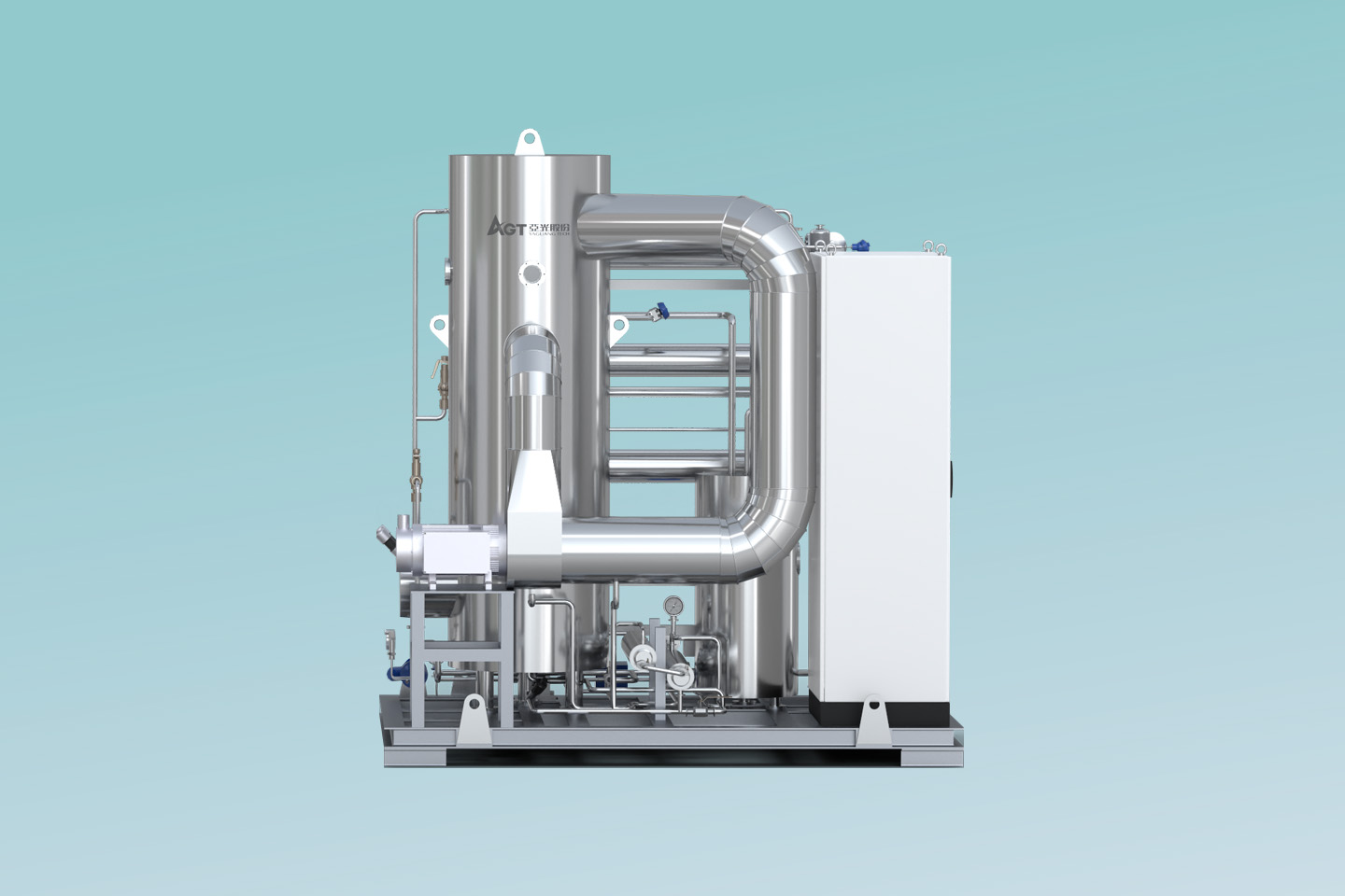 MVR熱泵精餾系統(tǒng)以高效旋轉(zhuǎn)精餾床為基礎,利用離心力場代替重力場,強化相與相之間的相對速度和相互接觸,通過強化傳質(zhì)傳熱來提高分離效率縮小設備體積。 通過在系統(tǒng)中引入適用于小流量、大壓比的螺桿式蒸汽壓縮機,即可實現(xiàn)MVR循環(huán)熱泵精餾。